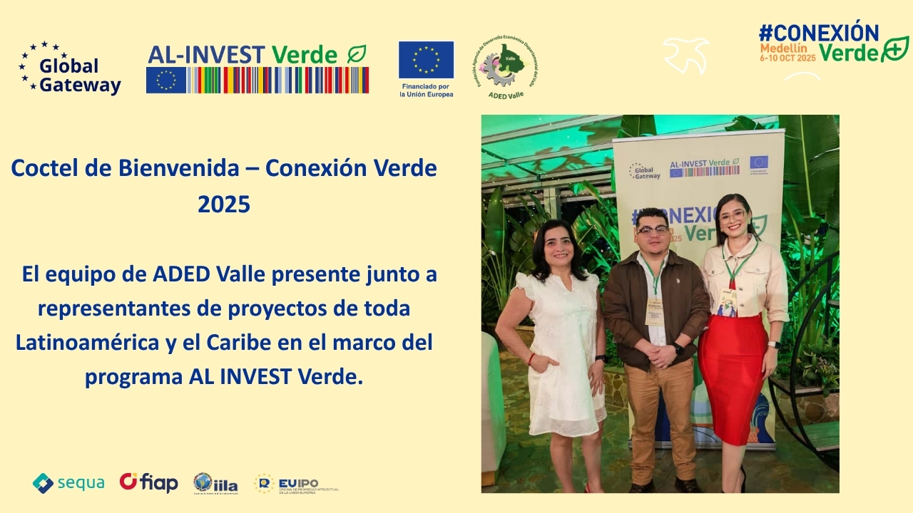 Iniciamos con el coctel de bienvenida, un espacio lleno de energía, intercambio de experiencias y trabajo en red entre representantes de los diferentes proyectos del programa AL INVEST Verde a nivel de Latinoamérica, el Caribe y representantes de la Unión Europea